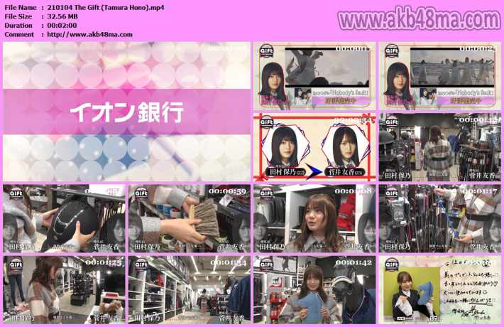Show Outline: The Gift is a weekly show in which the guest buys a gift for someone else. This week Sakurazaka46’s Tamura Hono buys a gift for captain Sugai Yuuka.