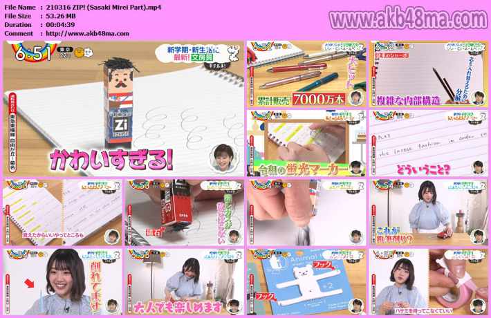 Sasaki Mirei (Hinatazaka46) appears in a segment on ZIP!, a daily morning show on NTV, and introduces some of the latest stationery items that is popular in Japan.