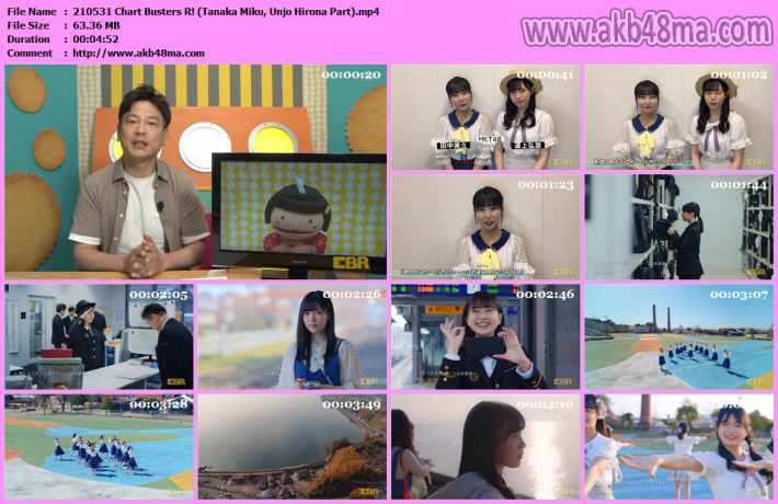 Chart Busters R! is a weekly music news show. Tanaka Miku and Unjo Hirona appear to briefly introduce HKT48’s new single and the MV is shown.