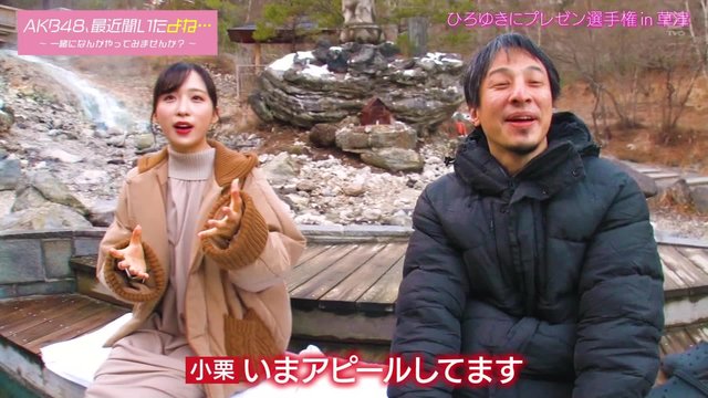 AKB48 takes a relaxing trip to the renowned Kusatsu Hot Springs, offering a serene escape from the hustle and bustle. The group enjoys a peaceful stroll through the picturesque hot spring town, soaking in the natural beauty and rejuvenating atmosphere. It’s a perfect blend of relaxation and fun, showcasing the healing power of nature.