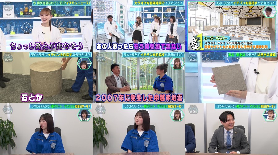 Kaningu Takeyama’s Ichiban Laboratory is a business-themed variety show where the host and researchers investigate the secrets of companies to provide clues for surviving today. This episode features researchers Ito Karin, Nakada Kana, and Takahashi Mikuni from Hinatazaka46. They delve into the secrets of "Life Art Plantech", a company aiming to be number one in building materials specialized for fire and earthquake prevention, and "Top First", a company aiming to be number one in the number of apartment and condominium units handled. The researchers also explore the secret behind owning many number one titles and the president’s quick decision-making. Additionally, Researcher Nakata investigates the secrets of karaoke in the studio. The show promises to provide the latest information and insights for living in today’s world.