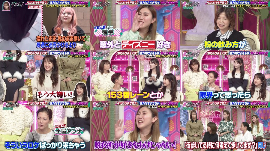 The show "上田と女が吠える夜" features a discussion on the theme of "体力がありすぎる女VSなさすぎる女" (Women with too much stamina vs women with too little stamina). Guests Sasaki Kumi, a former member of Hinatazaka46, and Saito Nagisa, a former member of =LOVE, join the conversation. The topics range from Saito Nagisa’s ability to sleep for 16 hours to Anna Tsuchiya’s energetic behavior at the airport. Other guests share their own experiences, such as Takahashi Naoko’s rigorous training camps and Aida Shoko’s secret story from her Wink days. The conversation also covers Takahashi Maasa’s love for delicious bread and Nagon Usukiko’s tendency to fall asleep in unusual places. Overall, the show explores the interesting habits and behaviors of these women, showcasing their unique personalities. #JapaneseVarietyShow #WomenWithStamina #FormerIdols #JapaneseEntertainment #VarietyShow #WomenEmpowerment #JapaneseCulture #EntertainmentNews