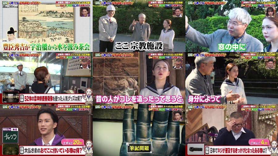 Tanaka-sensei, a passionate teacher, is on a mission to help his students learn and laugh at the same time. In the latest episode of "Call-out Teacher Tanaka," he visits Kyoto and Nara with his student, Murashige Anna, to explore the world heritage sites and national treasures of these cities. The episode features a special "New Common Sense Test" corner, where Tanaka-sensei and Murashige ask questions and test the knowledge of various celebrity guests, including Ikuzawa Rito from INI, Okada Sakaya, Kikurin, Tatsumi Kotaro, Fukawaryo, and Matsui Kemuri. The guests compete with each other to show off their knowledge and win the top score. With its unique blend of education and entertainment, this episode is not to be missed. #KyotoAndNaraWorldHeritage #NewCommonSenseTest #CallOutTeacherTanaka #JapaneseComedy #EducationAndEntertainment #TanakaSensei #MurashigeAnna #JapaneseTVShow