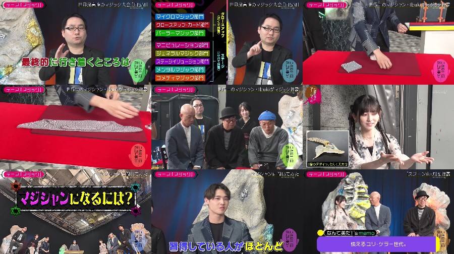 This week’s theme is "Magic" and how it can create surprises. The concept of magic has evolved from being feared as a form of magic to becoming a popular form of entertainment that brings smiles to people of all ages. Ibuki, a Japanese magician who won the Grand Prix at the world’s highest-level magic competition, makes an appearance. The show’s host, Koichi Komatsu, tries to have a deep conversation with a professional magician, but ends up being bombarded with questions from his co-host, Hyuga. The show explores the emotional connection behind magic and the moment when common sense and tricks intersect. With a lineup of talented guests, including Ando, Izuma, and Ibuki, this episode is not to be missed. #MagicShow #JapaneseEntertainment #ComedyAndMagic #SurprisingMoments #EmotionalConnection #TalentedGuests #EntertainmentForAll #MagicalSurprises