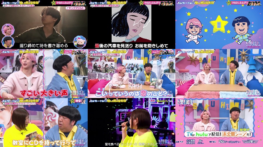 The show features a star-studded lineup, including Daisuke Sakurai from Snow Man, Yuichi Hirakawa from Bananaman, ILLIT, Ayaka, Macaroni Empitsu, Sakiko Ohara, Hiroko Moriguchi, Nao Yagi from Nogizaka46, Nobuhiko Ootani from Dinowoz, and Yunoson. The program delves into the hidden meanings behind Macaroni Empitsu’s lyrics and their experimental music style, with the band members sharing insights into their creative process. Ayaka also appears, discussing her unique voice and the past that has shaped her 20-year career, performing hits like "Minnna Sora no Shita" and "Wonder!". ILLIT, a globally popular girl group, talks about their rapid rise to fame and the "new cuteness" that appeals to all generations. #JapaneseMusic #ILLIT #Ayaka #MacaroniEmpitsu #Bananaman #SnowMan #Nogizaka46 #JapanesePopCulture