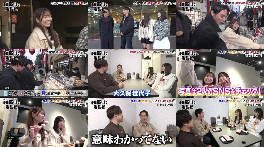 Omae Machida, Sakamoto Marin, and food-loving Hara Yune embark on a culinary adventure in Osu, visiting a restaurant that opened in 2025. Their first stop is a sweets shop with ties to Hara’s hometown, Fukuoka Prefecture. The trio indulges in Osu’s gourmet food, exploring the local flavors and delights. This exciting episode marks the first of the new year for the Aichi Atari Mae Kurabu.