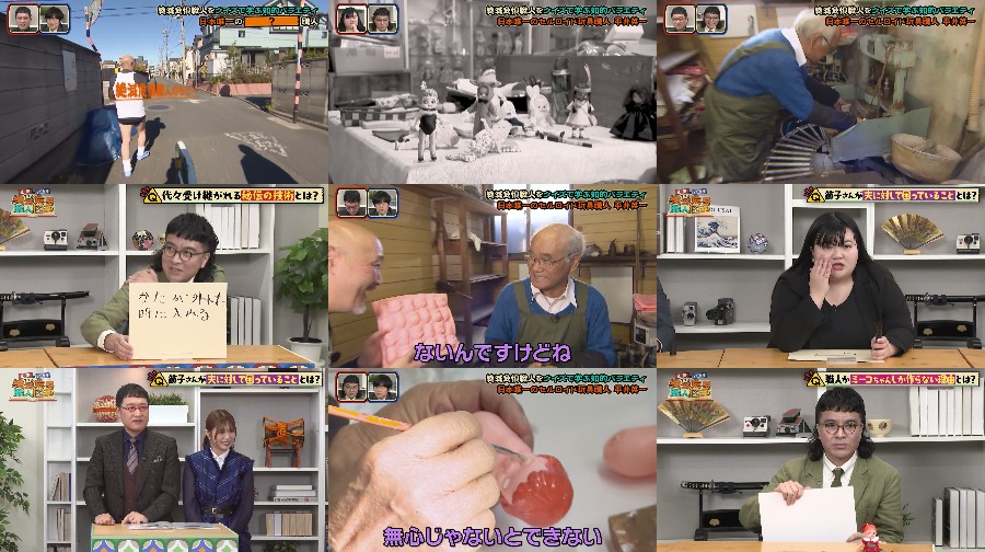 The first episode of the quiz show features Takemoto Yui from Sakurazaka46 as the assistant, with Bakarhythm, Yamaguchi Makoto, and Ueda Shiho as panelists. The endangered craft being highlighted is celluloid doll making, with solo comedian Kumada Masashi reporting on the process. The panelists are asked to guess the secret technique passed down through generations of celluloid doll makers, with Yamazato providing commentary and quips. The correct answer is revealed in a video, surprising Ueda Shiho. The show combines humor and education, making for an entertaining and informative watch. #QuizShow #JapaneseTV #Sakurazaka46 #Bakarhythm #CelluloidDollMaking #EndangeredCrafts #ComedyGold #JapaneseComedy