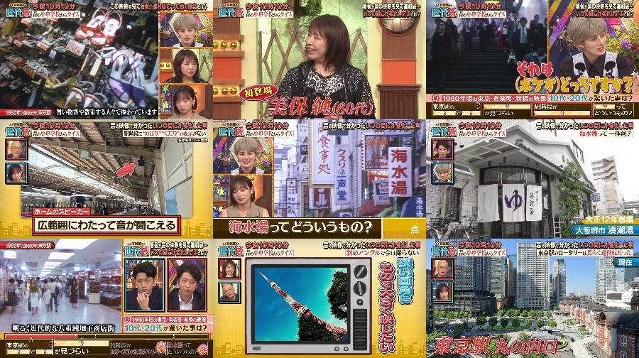 The show features a unique blend of old and new, where young people are shown footage of Tokyo’s past, including old images of Tokyo Station, Yurakucho Station, and Shinbashi Station. They react with surprise and curiosity to things like "what is ○○yu?" and "why is Tokyo Station’s ○○ reversed?" The show also includes a quiz with extremely difficult questions. Additionally, the program shows footage of elementary schools from the 80s to the current younger generation, who are shocked by the differences. The show’s popular segment "Street Corner Time Slip" features thrilling questions about surprising facts, such as the current state of Juliana Tokyo and the truth behind a certain doll. The show is hosted by Gekidan Hitori and Holachina, with guests including Minamikawa, Miho Jun, Inokari Sōya, and Saito Kyoko. #JapaneseTVShow #TimeSlip #TokyoStation #80sNostalgia #StreetCornerTimeSlip #JapanesePopCulture #QuizShow #EntertainmentProgram
