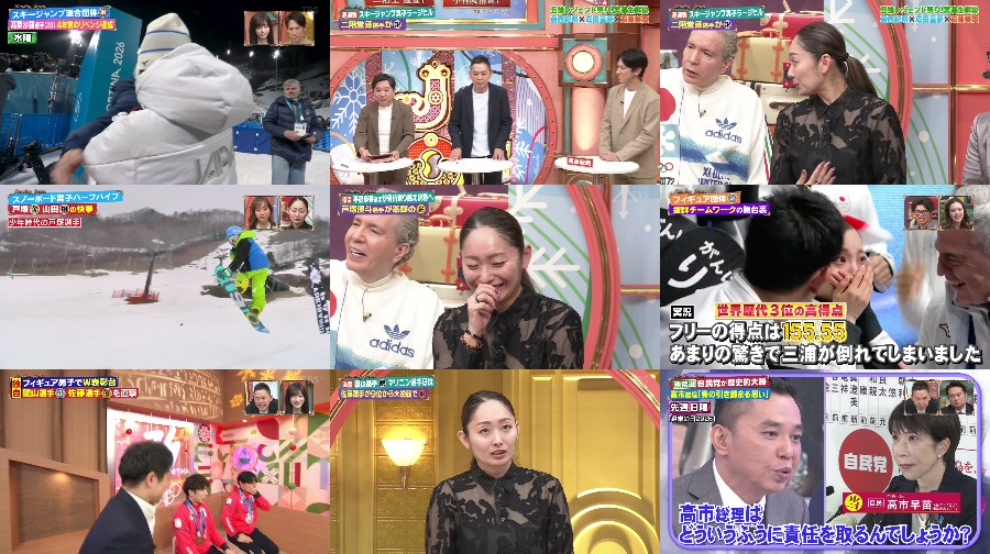 The program features a special episode of the Milan-Cortina Olympics, with a gathering of legendary athletes. The show includes super-fast reports on the men’s ski jumping large hill event, with commentary by legendary athlete Katsuhisa Furukawa and questions from Nogizaka46’s Eisa Ikeda. Additionally, the program covers the snowboarding halfpipe event, with commentary by former Olympic representative Daisuke Murakami, and the figure skating men’s free event, with analysis by former world champion Mao Asada. The show also features an interview with Mirai Party leader Takashi Anno, as well as investment tips from expert Taizo Sugimura. The episode is hosted by comedy duo Bakusho Mondai and features a range of guests, including athletes, politicians, and celebrities. #Olympics #Sports #Entertainment #Japan #MilanCortina #FigureSkating #SkiJumping #Snowboarding