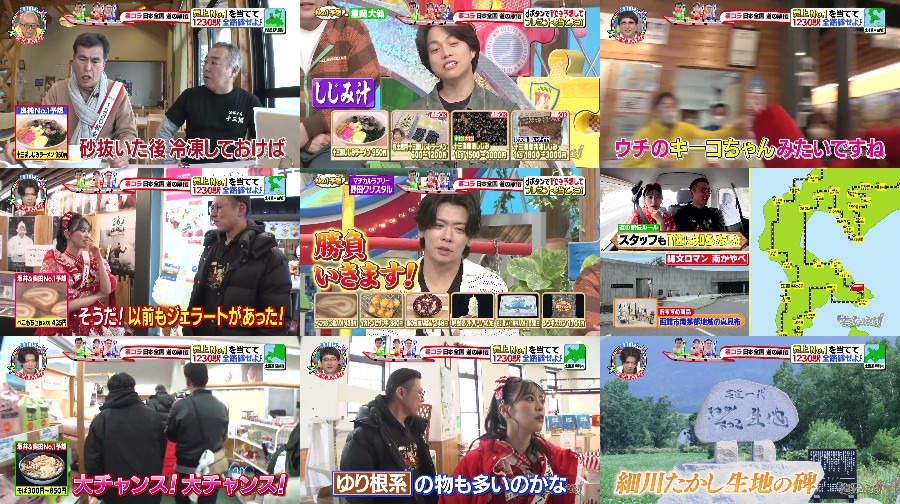 Yoshizumi Ishihara visits a roadside station in the northernmost part of Honshu, where he discovers large clams and clam ramen grown in Lake Jusanko. Meanwhile, Hitoka Sakai of Cho Tokimeki Sendenbu and Gakuten Sokuda visit a roadside station in Hokkaido, known for its gourmet food. They try soft serve ice cream topped with rare salt, handmade local sweets called "bekomochi", "Kita no Mame Anpan" made with plenty of red beans, and "Ika no Tonbi no Zangi". They also learn about the "Pearl of the Soil", a carefully cultivated product that has taken 6 years to develop. The next runner will also be announced, and viewers are invited to join the quiz. The guests on the show include Sakai Hitoka and Sashihara Rino, ex-HKT48. #HokkaidoGourmet #RoadsideStations #JapaneseFood #ChoTokimekiSendenbu #HKT48 #FoodieAdventures #JapaneseCulture #GourmetTravel