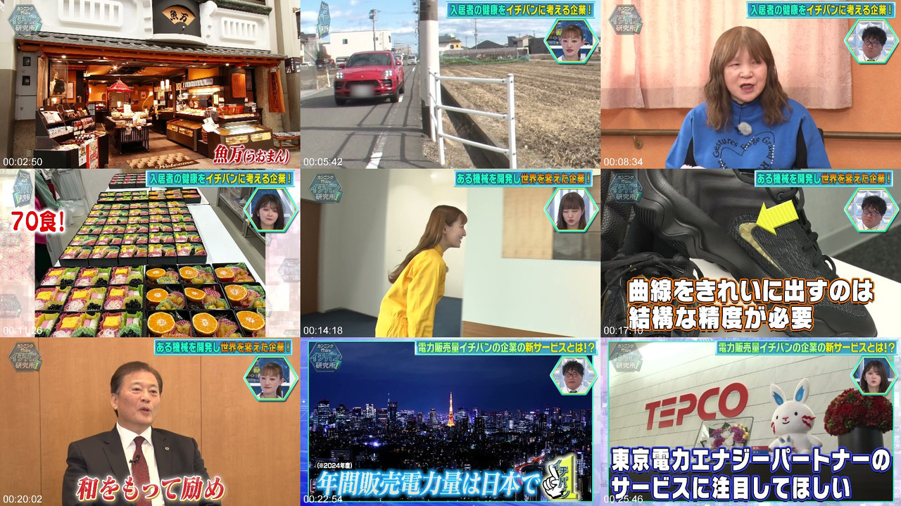 A business variety show where the team explores the secrets of top companies, with a focus on the latest information to help navigate the current world. This time, members of the Japanese idol group Hinatazaka46, including Karin Ito, Hana Nakata, and Yurina Yanagimoto, join the research team to power up the investigation. The team visits and researches three companies: Baldan, a leading embroidery machine manufacturer that pioneered computer control; Amour, a service-oriented housing facility focused on residents’ health; and Tokyo Electric Power Energy Partner, which aims to support companies in achieving carbon neutrality. The show also features news about a specific food-related anniversary.