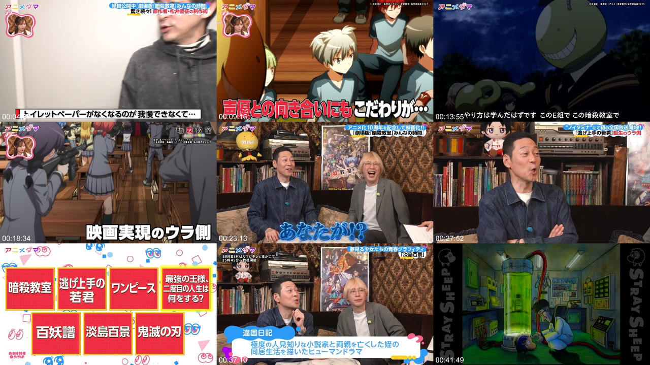 The highlights of the first broadcast are the highly anticipated latest installment of "Assassination Classroom," "Assassination Classroom: Minna no Jikan," which will be released on Friday, March 20th, and a special feature on the TV anime "Nigejou no Wakagimi," whose first season will begin airing on Fuji TV’s "Noitamina" nationwide on Friday, April 17th at 11:30 PM! We conducted an in-depth interview with Yusei Matsui, the author of "Assassination Classroom," which is celebrating its 10th anniversary since the completion of the original manga serialization and the end of the TV anime broadcast, and "Nigejou no Wakagimi," which finished its serialization in February of this year and is gaining even more momentum with the first nationwide broadcast of the TV anime, to get a glimpse into his dedication to his works and his thoughts on anime.初回放送の”目玉”は、いよいよ3月20日(金)に公開となる『暗殺教室』ファン待望の最新作、『劇場版「暗殺教室」みんなの時間』や、4月17日(金)23時30分より全国フジテレビ系”ノイタミナ”にて第一期の放送がスタートするTVアニメ『逃げ上手の若君』の大特集!原作連載完結&TVアニメ放送終了から10年というアニバーサリーイヤーを迎えた『暗殺教室』と、今年2月に連載を終え、TVアニメの全国ネットでの初放送も決定し、さらなる盛り上がりを見せる『逃げ上手の若君』の原作者・松井優征先生に密着取材を行い、作品へのこだわりやアニメへの思いに迫る