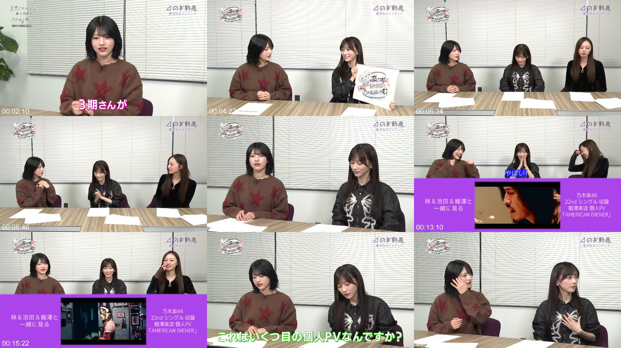 This episode of Nogizaka46 features 3rd generation member Miona Umezawa as the first guest, where she reflects on her personal PV "AMERICAN DIENER". The show reveals her innocent and fresh persona, as well as behind-the-scenes stories and rare footage from the shoot. Additionally, Miona discusses her upcoming graduation concert, which is currently in the planning stages. The episode begins with the unveiling of a custom-made program logo created by Ikeda. Be sure to check it out!