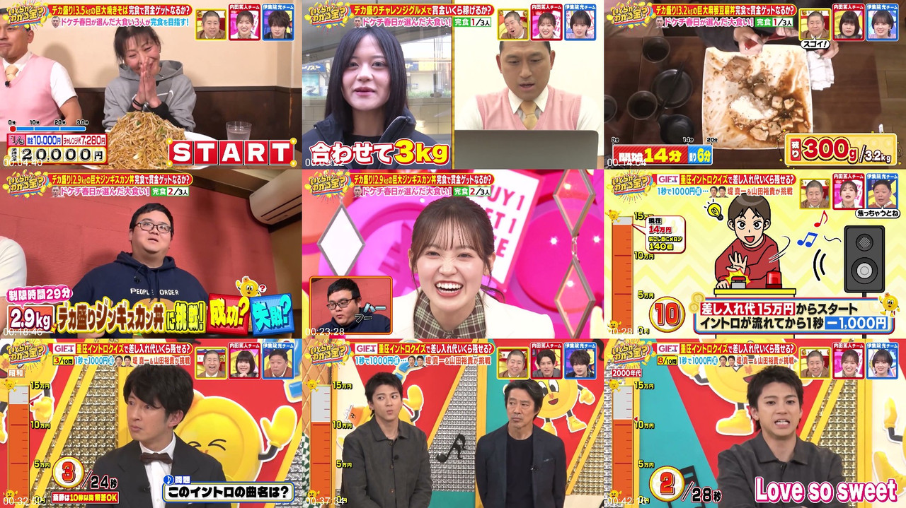 The show explores interesting money matters from around the world and presents the results in a quiz format. It features a heated prediction battle between two teams, moderated by "Haraichi’s Sawabe & Sugiyama Announcer". The program also includes a mega-portion gourmet challenge where contestants try to finish large amounts of food, and a money stop intro quiz where the gift fund decreases if the contestants take too long to answer correctly. The quiz features the cast of the Sunday drama "GIFT", including Tsutsumi Shinichi and Yamada Yuki, who try to save as much of the 150,000 yen gift fund as possible. The show is a fun and entertaining way to learn about money matters and features a star-studded cast. #MoneyMatters #QuizShow #GourmetChallenge #GiftFund #SundayDrama #EntertainmentNews #TVShow #FinancialEducation