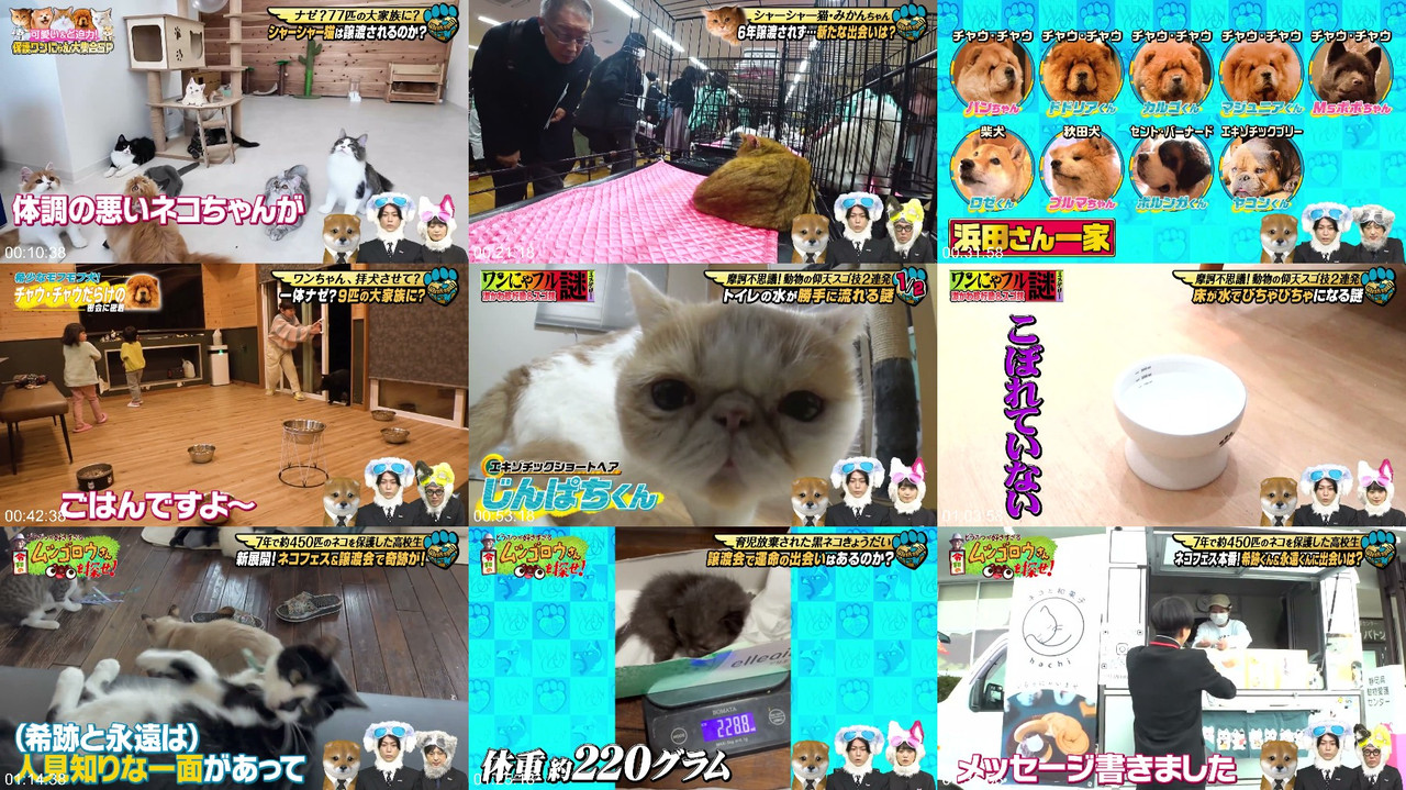 Kamenashi-kun’s Wan-Nyan Full, hosted by Kazuya Kamenashi, features nine adorable cats and a large Chow Chow family. The show highlights the story of a super high school student who has rescued and rehomed 450 cats since the age of 10, including a cold-hearted cat that was recently rehomed. The student also organized a large-scale cat festival, showcasing their dedication to cat rescue and adoption. Additionally, the show visits a dog-loving house with a family of 9 Chow Chows, providing an entertaining and heartwarming experience for animal lovers. #KamenashiKun #WanNyanFull #CatRescue #DogLovers #ChowChowFamily #AnimalAdoption #FurryFriends #PetLovers