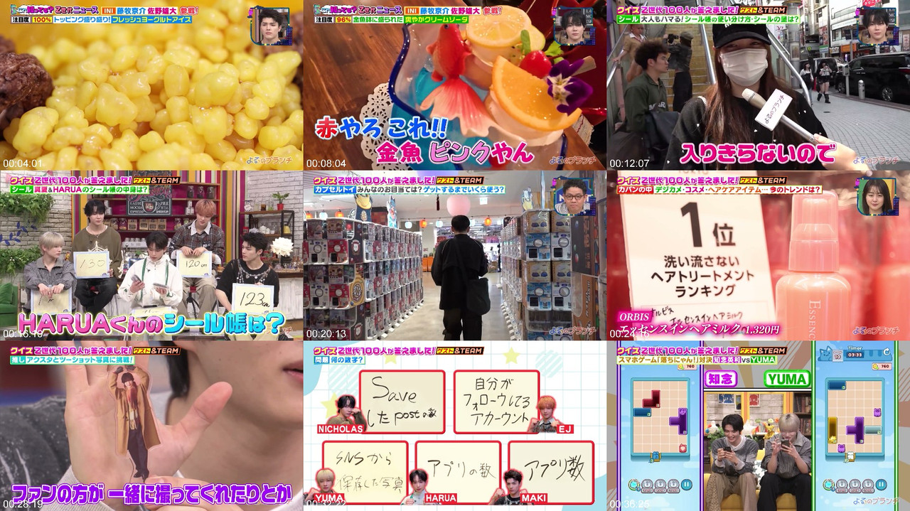 MC Miki and Panther Mukai introduce the latest trending topics, including a thorough investigation of sticker books and capsule toys that are currently hugely popular with Gen Z. They also explore how to take two-shot photos with acrylic stands that are trending with Gen Z. Additionally, Hidekazu Chinen and &TEAM YUMA face off in a popular smartphone game, while INI’s Yudai Sano and Kyosuke Fujimaki introduce popular gourmet spots in the Shibuya and Aoyama areas in a vlog style. The show features a range of fun and interesting topics, making it a must-watch for fans of Japanese pop culture. #JapanesePopCulture #GenZTrends #TrendingTopics #JapaneseEntertainment #PopCultureNews #EntertainmentNews #JapaneseGaming #FoodieAdventures
